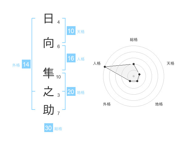 日向 隼之助さんを姓名の画数から五運を鑑定