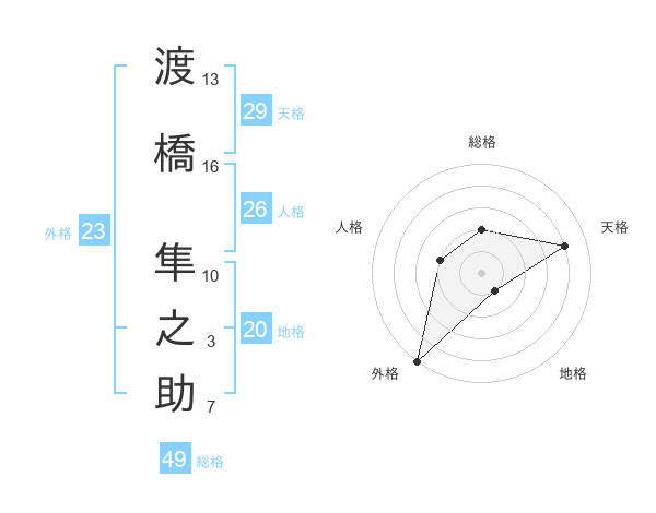 渡橋 隼之助さんを姓名の画数から五運を鑑定