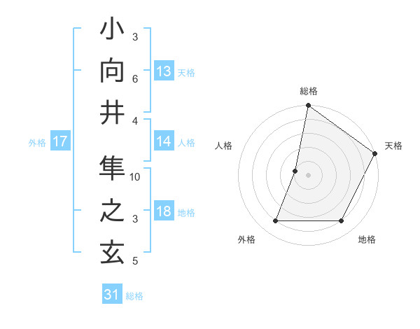 小向井 隼之玄さんを姓名の画数から五運を鑑定