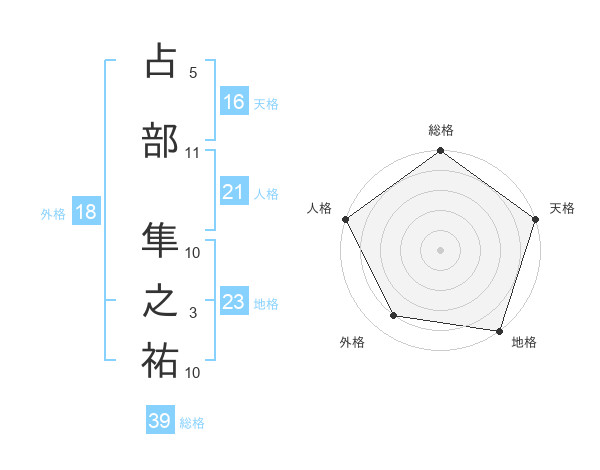 占部 隼之祐さんを姓名の画数から五運を鑑定