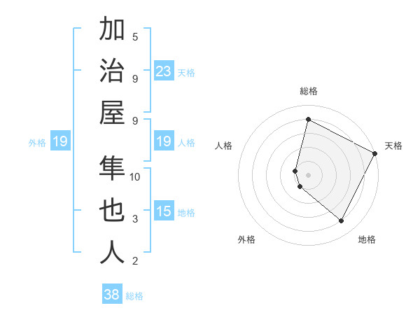 加治屋 隼也人さんを姓名の画数から五運を鑑定