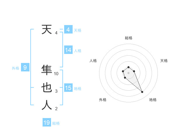 天 隼也人さんの地格は15画の4点!