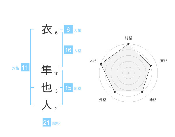 衣 隼也人さんを姓名の画数から五運を鑑定