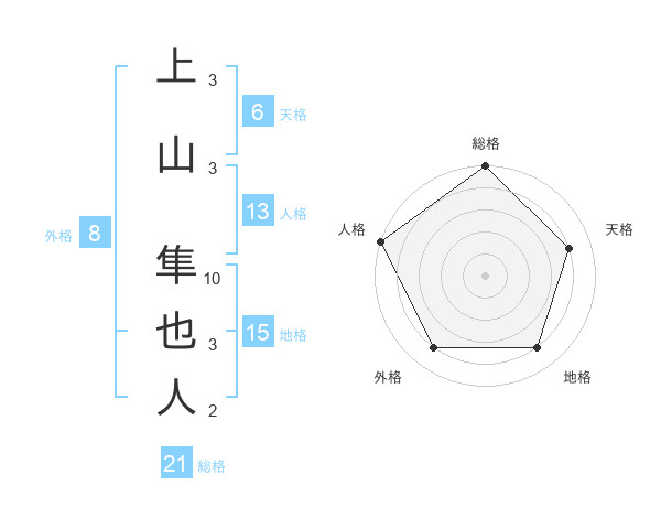上山 隼也人さんの総格は21画の5点