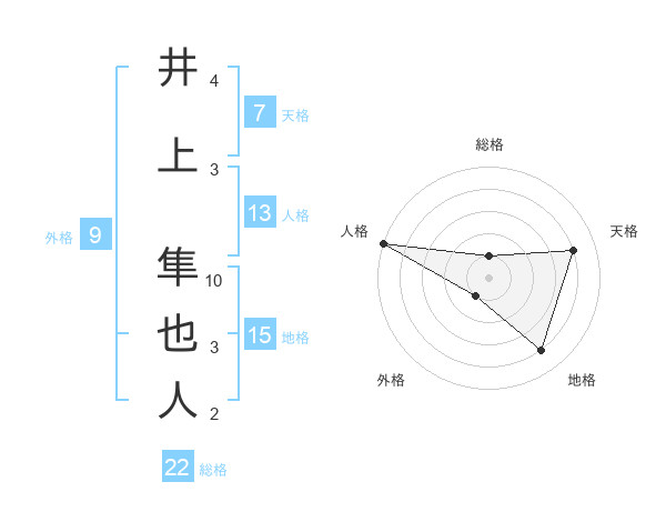 井上 隼也人さんを姓名の画数から五運を鑑定