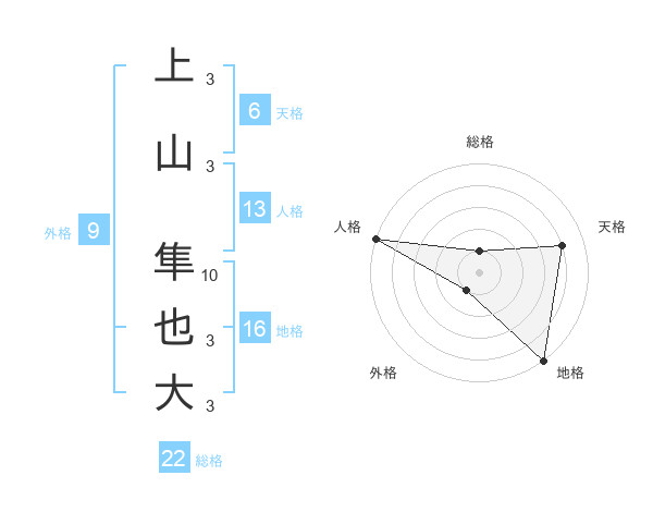 上山 隼也大さんの総格は22画の1点!