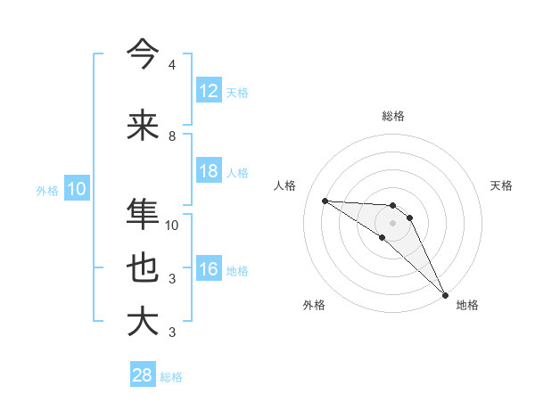 今来 隼也大さんを姓名の画数から五運を鑑定