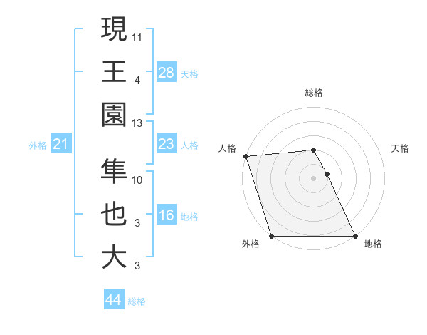 現王園 隼也大さんを姓名の画数から五運を鑑定