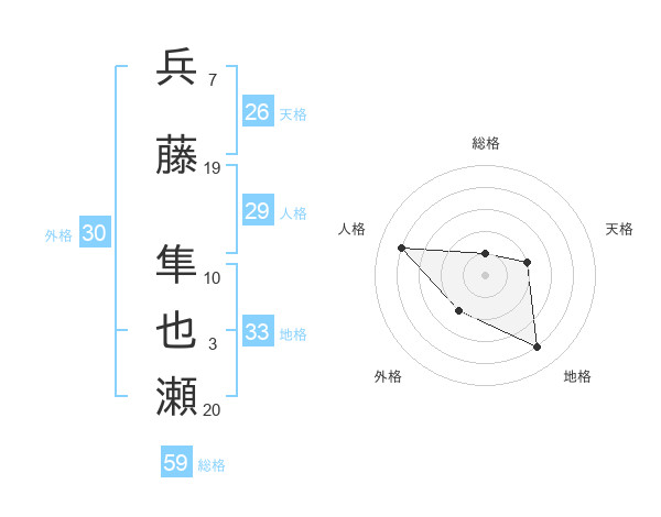 兵藤 隼也瀬さんを姓名の画数から五運を鑑定