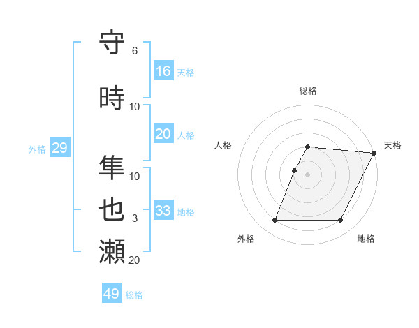 守時 隼也瀬さんの総格は49画の2点