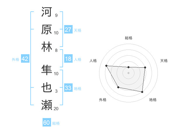 河原林 隼也瀬さんを姓名の画数から五運を鑑定