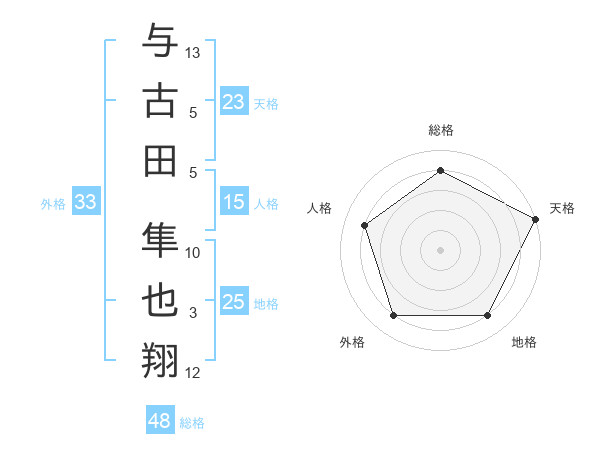 与古田 隼也翔さんの天格は23画の5点!