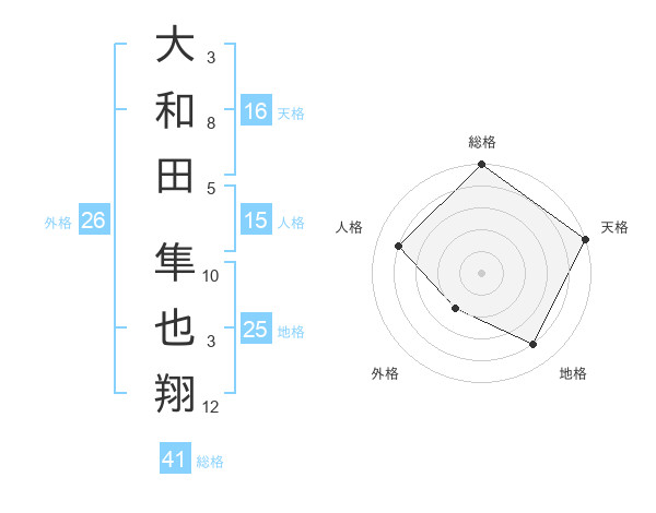 大和田 隼也翔さんを姓名の画数から五運を鑑定
