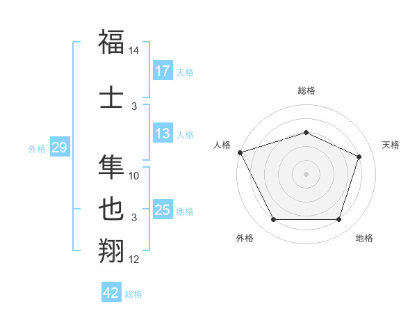 福士 隼也翔さんの天格は17画の4点!