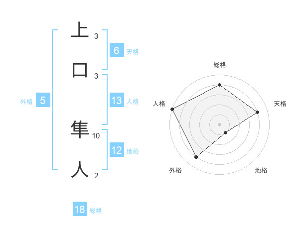 上口 隼人さんの総格は18画の4点!