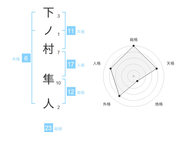 下ノ村 隼人さんの総格は23画の5点!