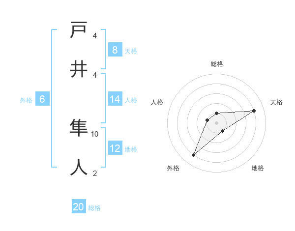 戸井 隼人さんの天格は8画の4点!