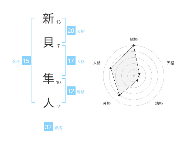 新貝 隼人さんを姓名の画数から五運を鑑定