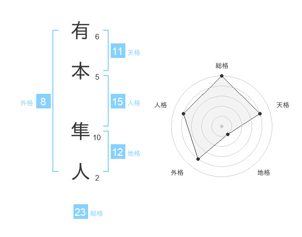 有本 隼人さんの総格は23画の5点!