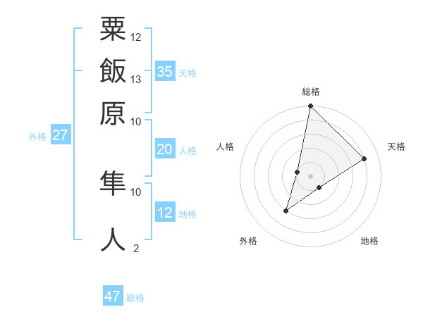 粟飯原 隼人さんを姓名の画数から五運を鑑定