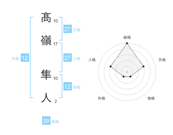 髙嶺 隼人さんを姓名の画数から五運を鑑定