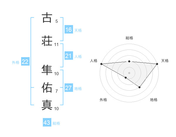古荘 隼佑真さんを姓名の画数から五運を鑑定