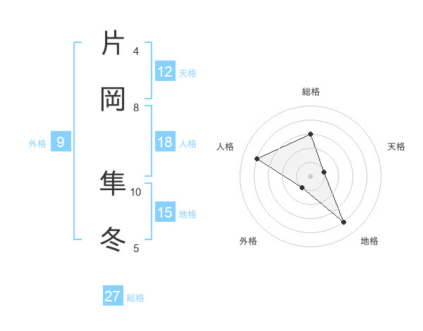 片岡 隼冬さんの総格は27画の3点!