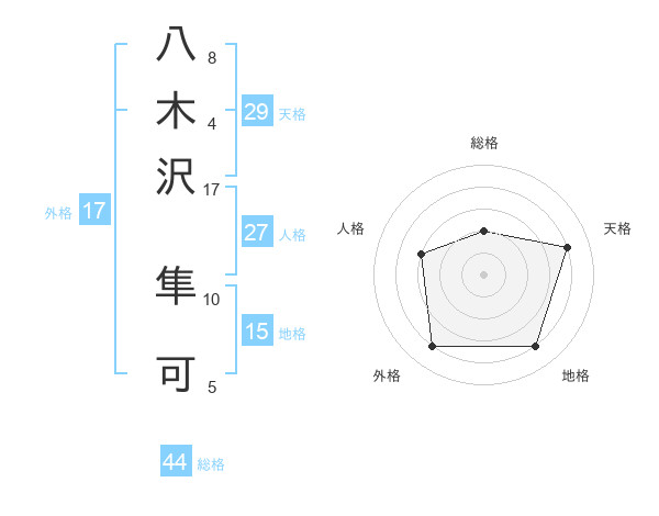 八木沢 隼可さんの外格は17画の4点!