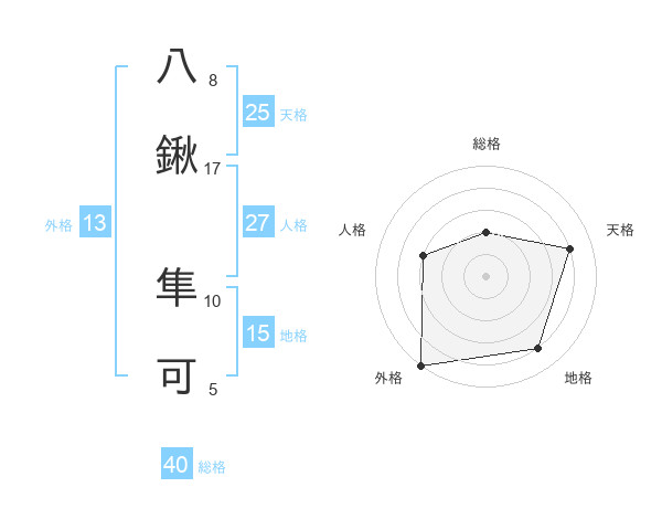 八鍬 隼可さんの総格は40画の2点!