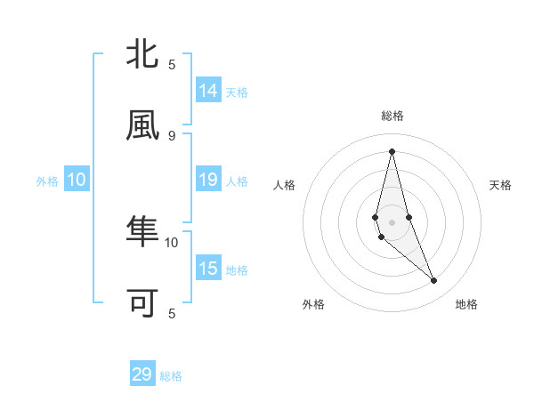 北風 隼可さんの総格は29画の4点!