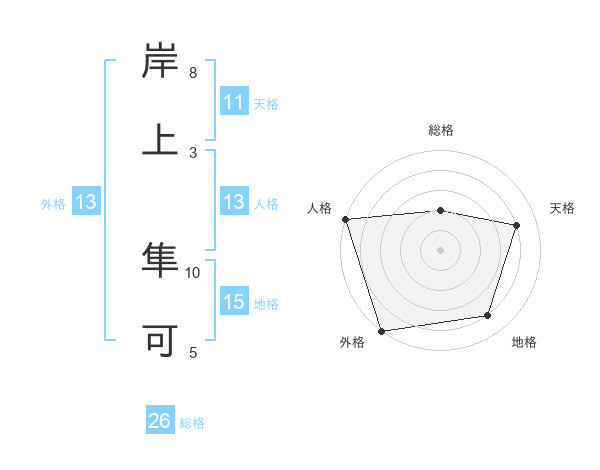 岸上 隼可さんの外格は13画の5点!