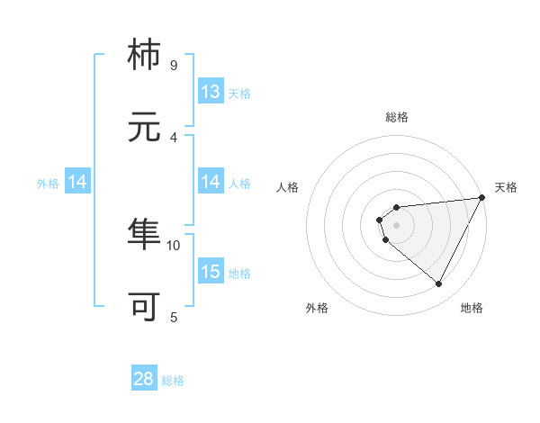 柿元 隼可さんの天格は13画の5点!