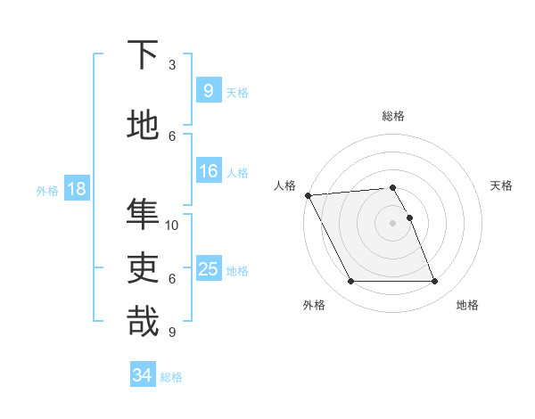 下地 隼吏哉さんを姓名の画数から五運を鑑定