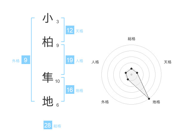 小柏 隼地さんの天格は12画の1点!