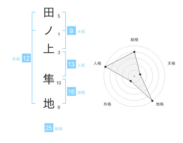 田ノ上 隼地さんを姓名の画数から五運を鑑定