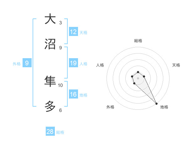 大沼 隼多さんを姓名の画数から五運を鑑定