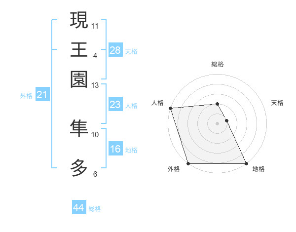 現王園 隼多さんを姓名の画数から五運を鑑定