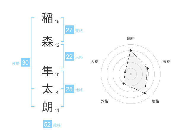 稲森 隼太朗さんの総格は52画の4点!