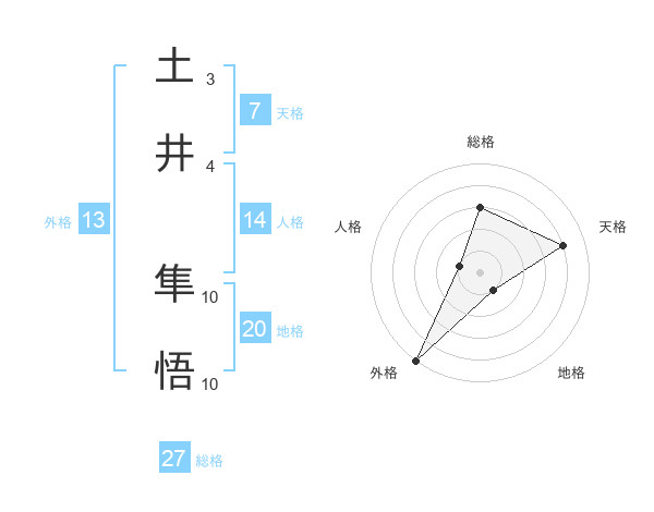 土井 隼悟さんの総格は27画の3点!