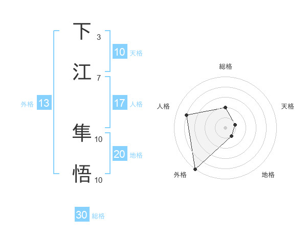 下江 隼悟さんの総格は30画の2点!