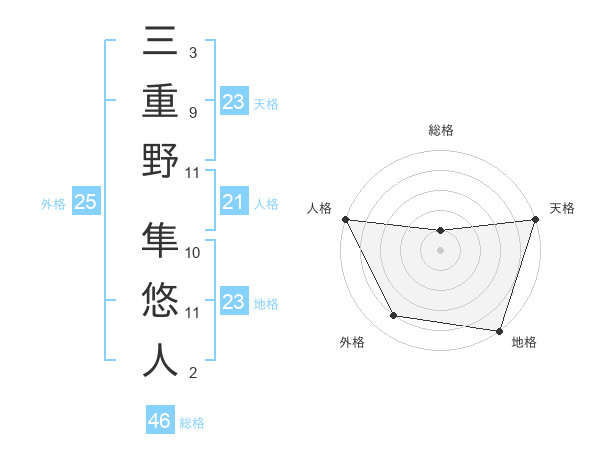 三重野 隼悠人さんの地格は23画の5点!