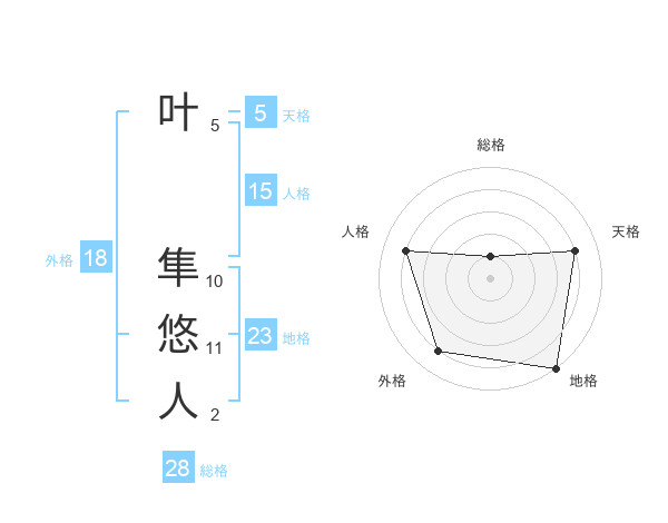 叶 隼悠人さんの地格は23画の5点!