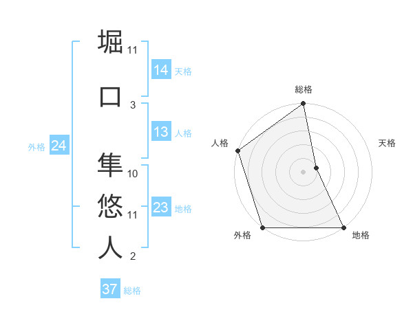 堀口 隼悠人さんの総格は37画の5点!
