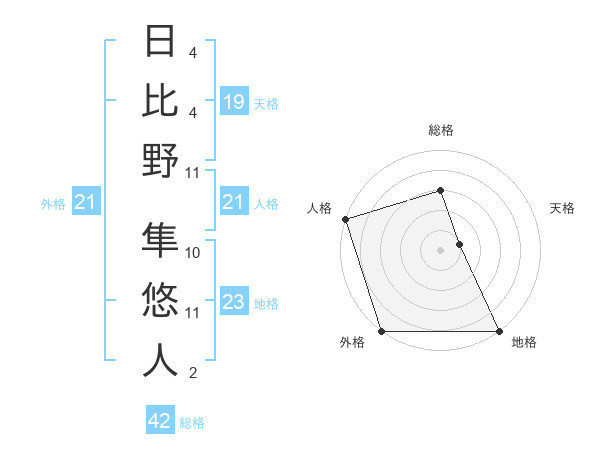 日比野 隼悠人さんの外格は21画の5点!