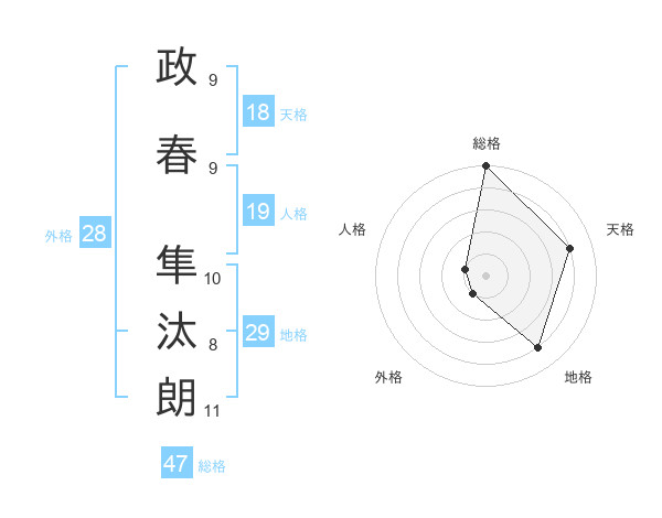 政春 隼汰朗さんの総格は47画の5点!