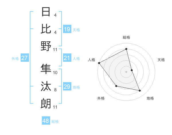 日比野 隼汰朗さんを姓名の画数から五運を鑑定