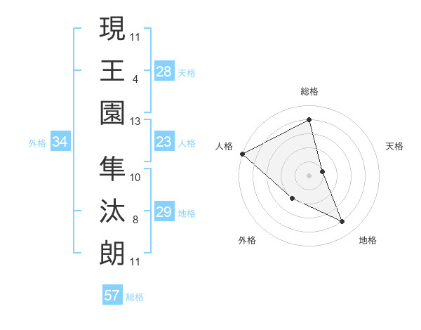 現王園 隼汰朗さんを姓名の画数から五運を鑑定