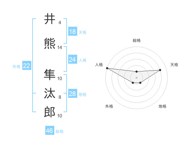 井熊 隼汰郎さんの地格は28画の1点!