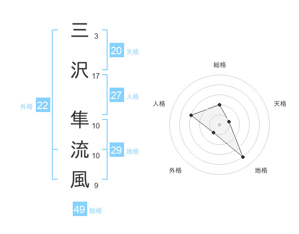 三沢 隼流風さんを姓名の画数から五運を鑑定