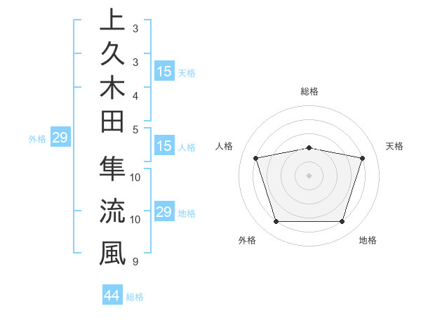 上久木田 隼流風さんを姓名の画数から五運を鑑定